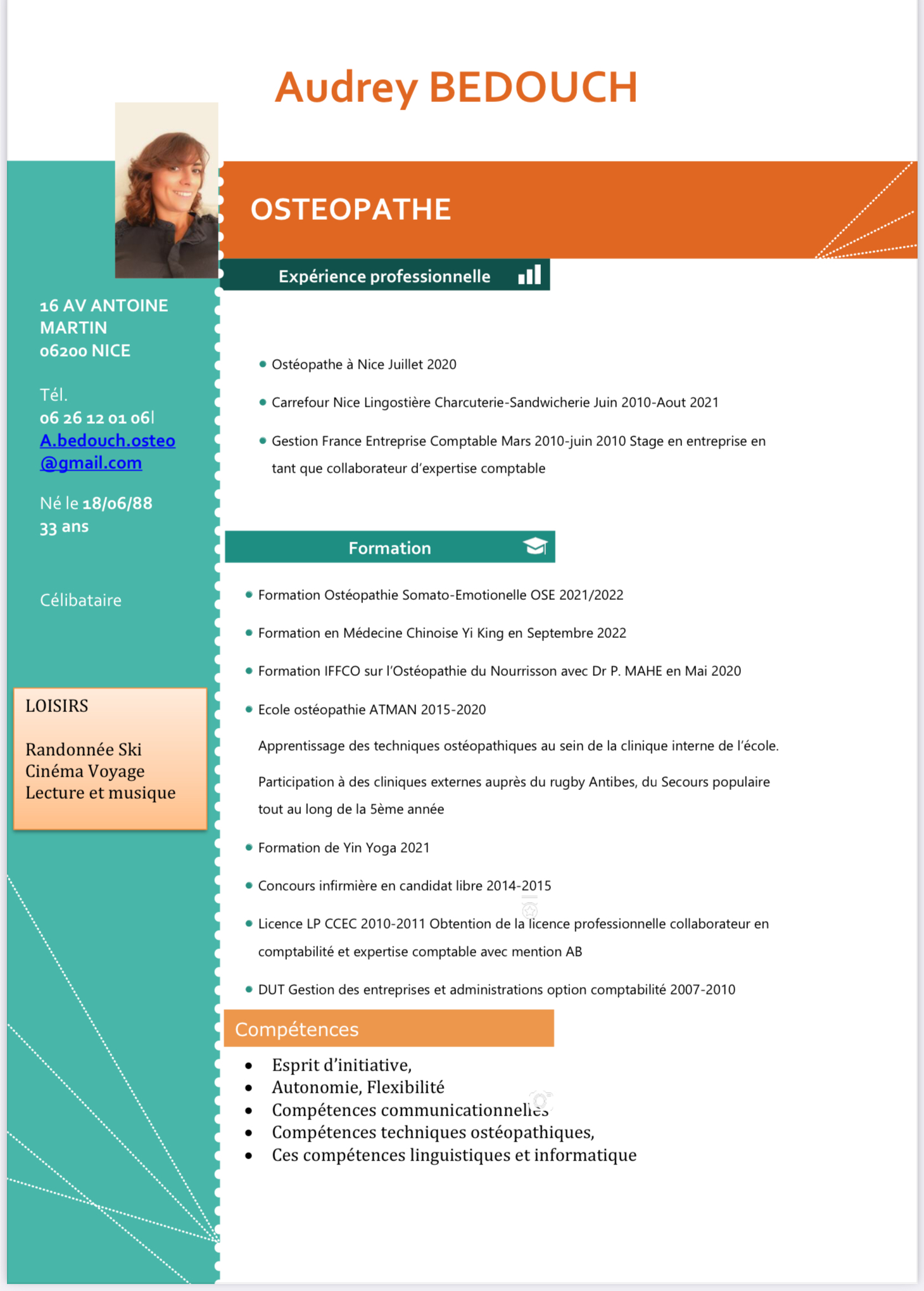 Je me présente, je suis Audrey BEDOUCH ostéopathe D.O diplômée depuis Juin 2020.